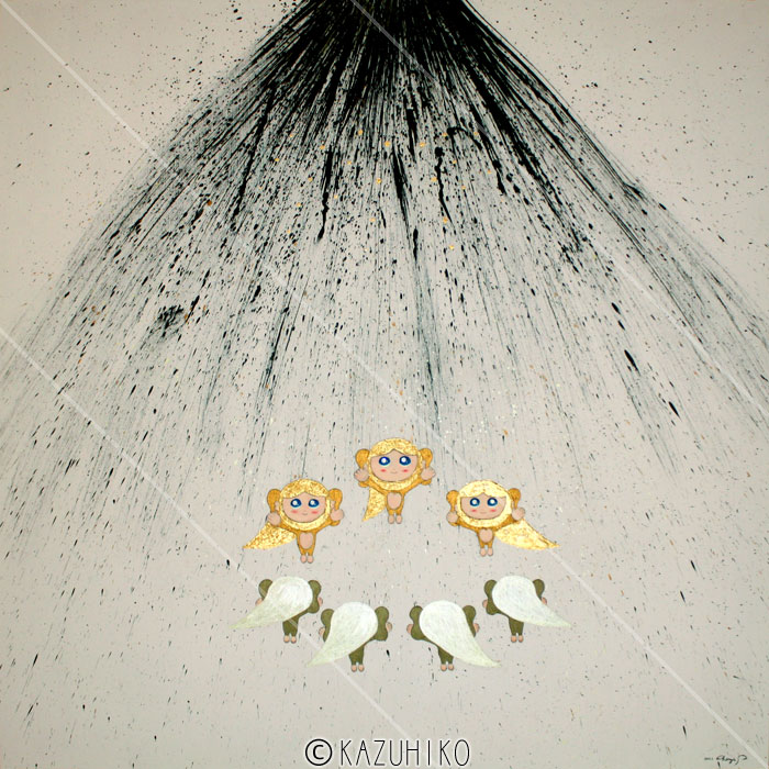 indian ink & gansai & gold foil & zirconia & acrylic on panel